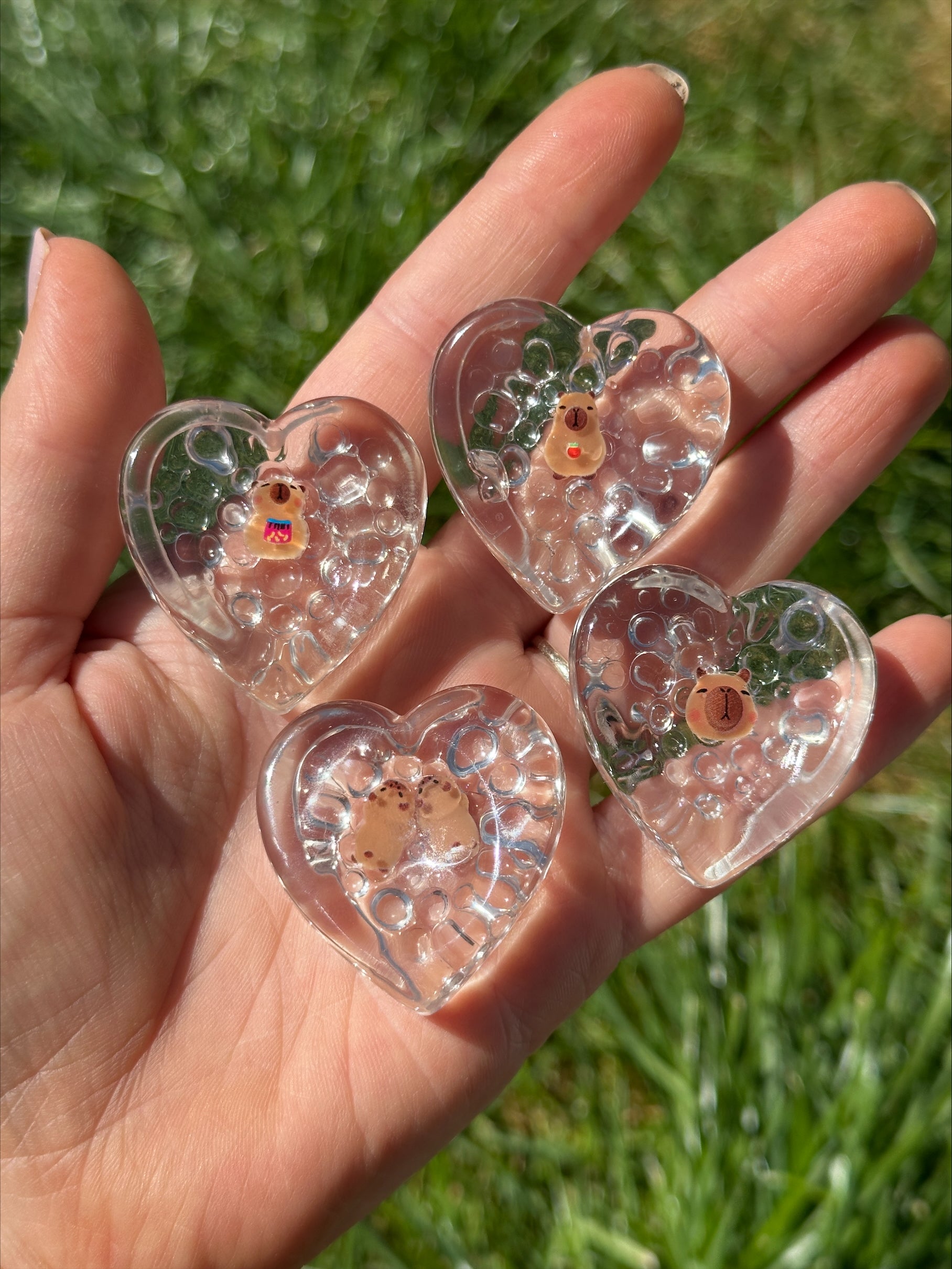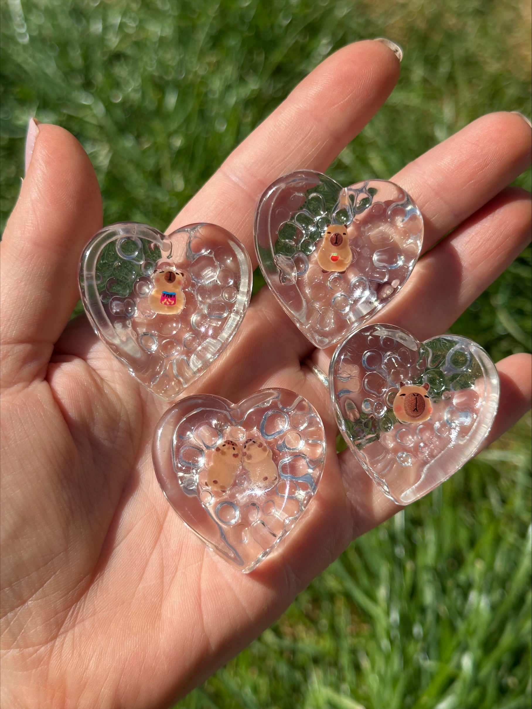 Discover pure joy with our Capybara Collection at Fidget Friends Co! These clear resin worry stones each feature a delightful surprise capybara inside, making every piece truly unique. Customize your experience by choosing the shape of your worry stone. Plus, enjoy the dual sensation of a smooth side for your thumb and a textured side with a soothing raindrop effect. Perfect for fidgeting, stress relief, and adding a touch of whimsy to your day!